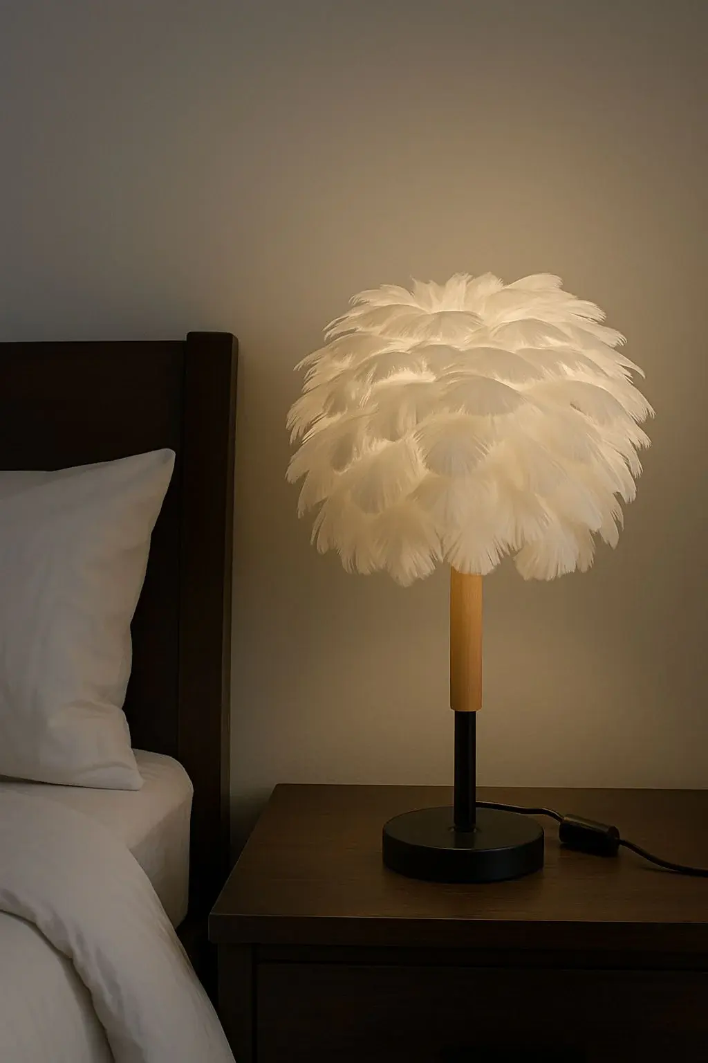 - Material : feather with metal and the touch of wood